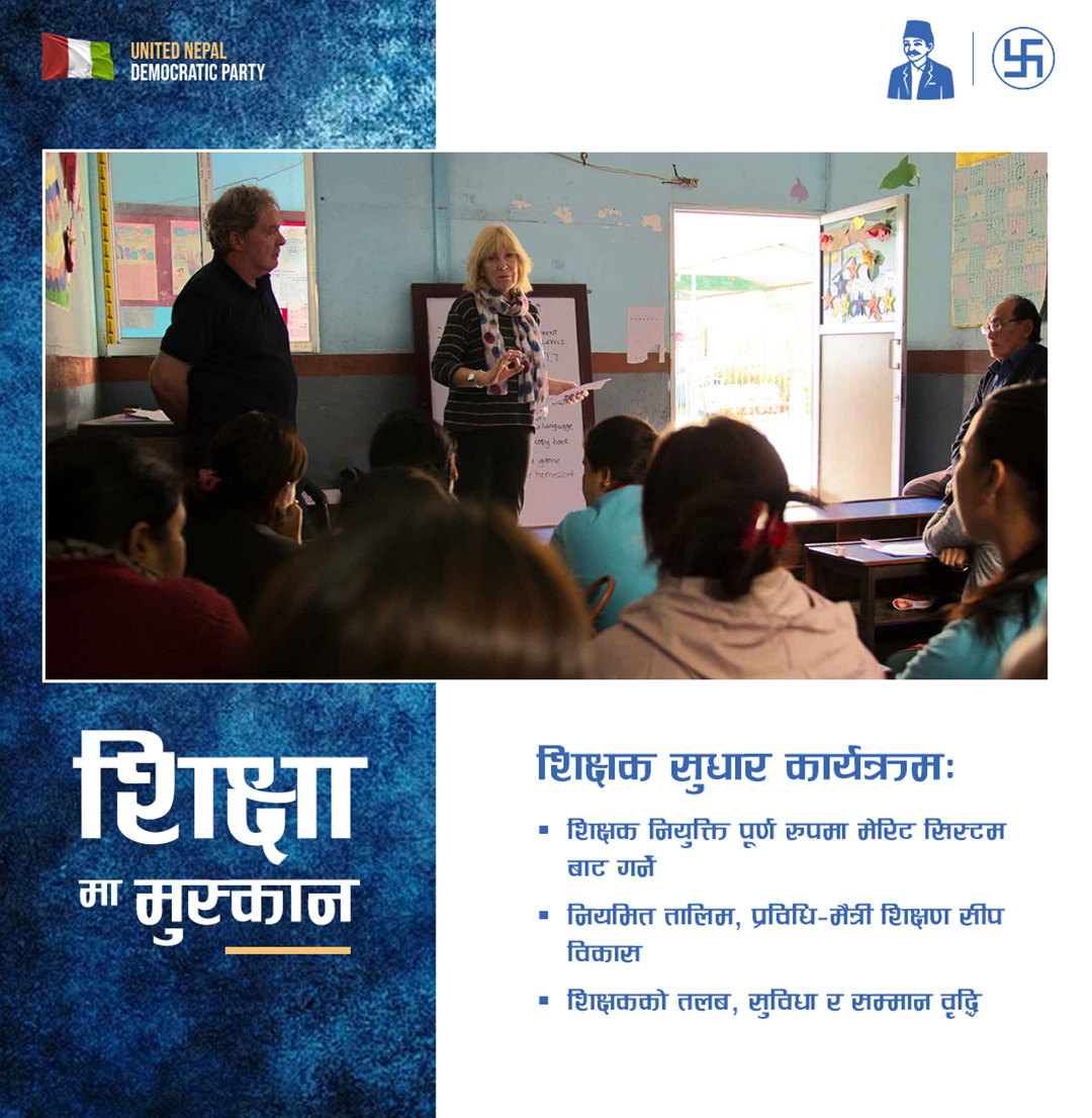 शिक्षक सुधार कार्यक्रम बिना गुणस्तरीय शिक्षा सम्भव हुँदैन। शिक्षक नियुक्तिलाई पूर्ण रूपमा मेरिट सिस्टममा आधारित बनाएर योग्य, दक्ष र प्रतिबद्ध शिक्षक छनोट गर्नुपर्छ। राजनीतिक पहुँच वा पक्षपातको सट्टा योग्यता, क्षमता र प्रदर्शनलाई आधार बनाउँदा शिक्षण सिकाइ प्रक्रिया प्रभावकारी हुन्छ र विद्यार्थीको नतिजामा सकारात्मक परिवर्तन देखिन्छ।