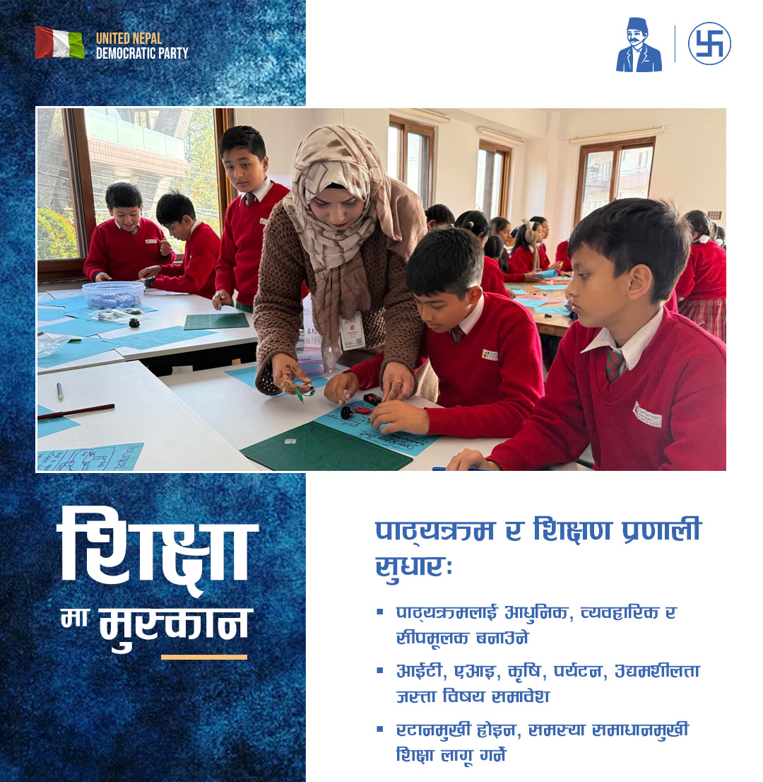 त्यसैगरी, शिक्षालाई रोजगारमुखी र सीपमूलक बनाउने स्पष्ट नीति ल्याउनु आजको प्रमुख आवश्यकता हो। सैद्धान्तिक ज्ञानसँगै प्राविधिक, व्यावसायिक र जीवनोपयोगी सीपमा जोड दिँदा विद्यार्थी स्वदेशमै रोजगारीका लागि सक्षम बन्छन्। निजी र सरकारी शिक्षाबीच गुणस्तरीय समानता सुनिश्चित गरिएमा आर्थिक अवस्थाका आधारमा शिक्षा प्राप्तिमा हुने विभेद अन्त्य भई सबै नागरिकलाई समान, गुणस्तरीय र प्रतिस्पर्धी शिक्षा प्राप्त गर्ने अवसर सुनिश्चित हुनेछ।