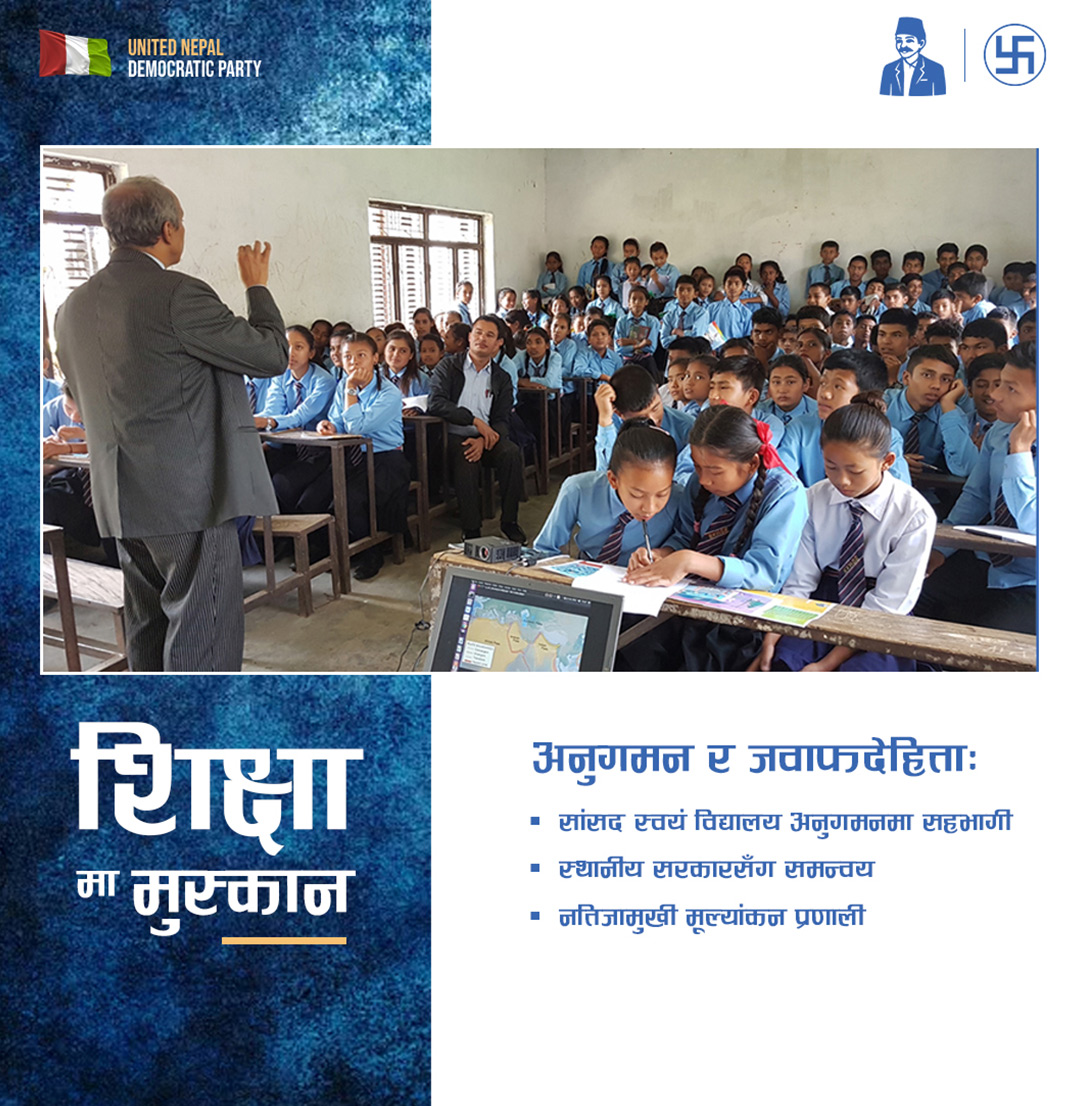 त्यसैगरी, स्थानीय सरकारसँग प्रभावकारी समन्वय गरी जिम्मेवारी स्पष्ट रूपमा बाँड्न आवश्यक छ। संघ, प्रदेश र स्थानीय तहबीच सहकार्य हुँदा स्रोतको सदुपयोग र कार्यक्रमको प्रभावकारिता बढ्छ। नतिजामुखी मूल्यांकन प्रणाली लागू गरी विद्यार्थी सिकाइ उपलब्धि, शिक्षक कार्यसम्पादन र विद्यालय प्रगतिको नियमित मूल्यांकन गरिएमा शिक्षा प्रणाली थप उत्तरदायी, पारदर्शी र परिणाममुखी बन्नेछ।