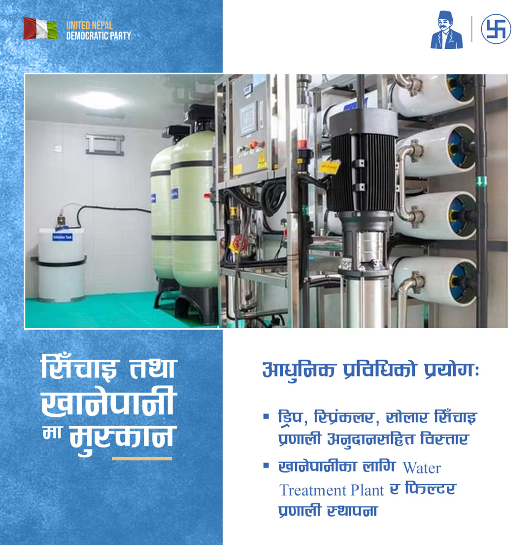 त्यसैगरी, सुरक्षित र स्वच्छ खानेपानी सुनिश्चित गर्न Water Treatment Plant तथा फिल्टर प्रणालीको स्थापना अत्यन्त महत्वपूर्ण हुन्छ। दूषित पानीका कारण फैलिने रोग नियन्त्रणका लागि स्रोतदेखि धारासम्म पानी शुद्धीकरण अनिवार्य हुनुपर्छ। आधुनिक प्रविधि र नियमित परीक्षणसहित सञ्चालन गरिने यस्ता प्रणालीले नागरिकको स्वास्थ्य सुरक्षा सुनिश्चित गर्दै दीर्घकालीन रूपमा स्वच्छ पानीमा पहुँच विस्तार गर्न सहयोग पुर्याउँछ।