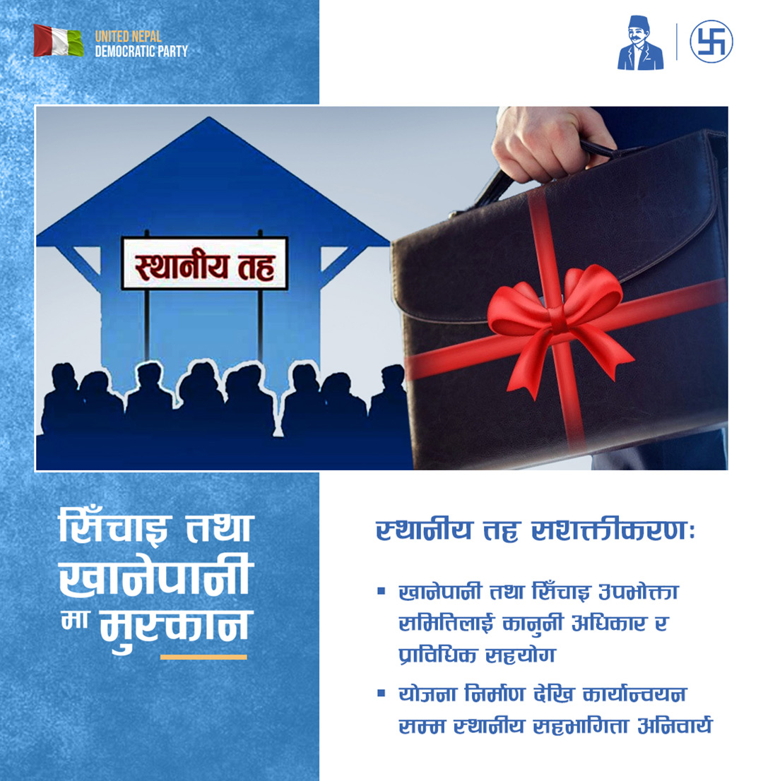 स्थानीय तह सशक्तीकरण बिना खानेपानी तथा सिँचाइका योजना दिगो हुन सक्दैनन्। स्थानीय स्तरमै गठन भएका खानेपानी तथा सिँचाइ उपभोक्ता समितिलाई स्पष्ट कानुनी अधिकार, प्राविधिक सहयोग र आवश्यक स्रोत उपलब्ध गराउँदा परियोजनाको स्वामित्व समुदायमै विकसित हुन्छ। यसले आयोजना सञ्चालन, मर्मतसम्भार र व्यवस्थापनलाई प्रभावकारी बनाउँदै सरकारी निकायमाथिको निर्भरता घटाउँछ र दीर्घकालीन स्थायित्व सुनिश्चित गर्दछ।
